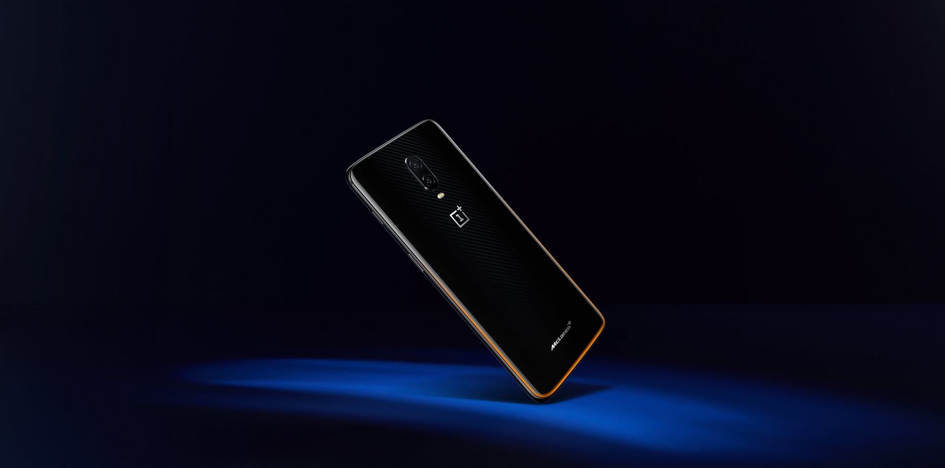 Das OnePlus 6T McLaren Edition kommt außerdem mit einem Carbonfaser-Backcover im McLaren Formel-1-Look daher. Wie schon auf dem vorab geleakten Teaser zu sehen war, wird der untere Rand des Backcovers von einer Papayaorange-farbenen Linie dynamisch eingefasst. OnePlus und McLaren nennen diese Farbumrandung "Speed Trail". Auch das McLaren-Badge darf auf der Sonderedition für Fans nicht fehlen.