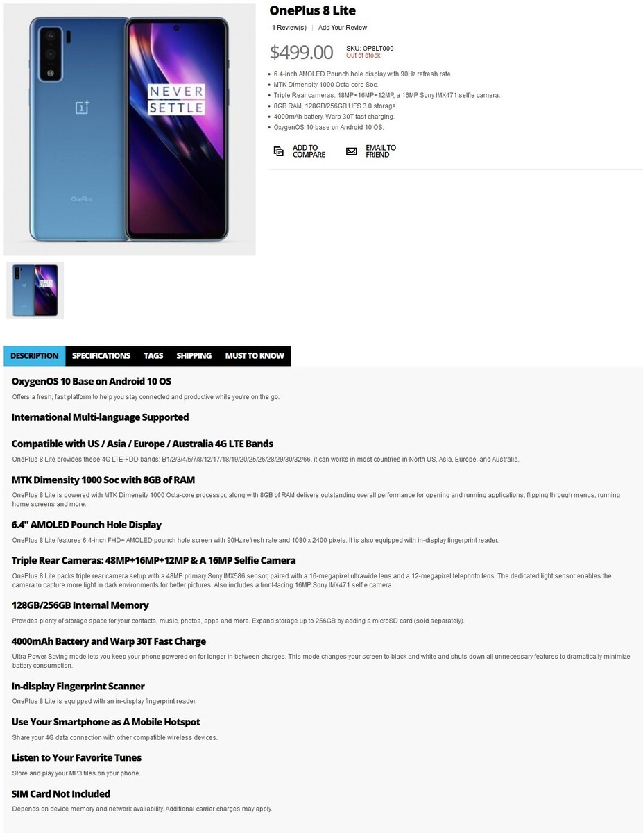 Der Leak ist massiv, allerdings ist die Echheit der Angaben zu den noch nicht offiziell angekündigten Smartphones OnePlus 8, 8 Pro und 8 Lite, die ein Onlinehänder in seinem Webshop macht, nicht bestätigt. Die Händler-Angaben erwecken den Anschein, dass es sich bei den präsentierten, technischen Details und Spezifikationen zum OnePlus 8, OnePlus 8 Lite und OnePlus 8 Pro nicht um die tatsächlichen Konfigurationen der neuen OnePlus 8-Handys handelt, sondern lediglich auf Grundlage der bislang kursierenden Gerüchte zusammengetragen wurden.
