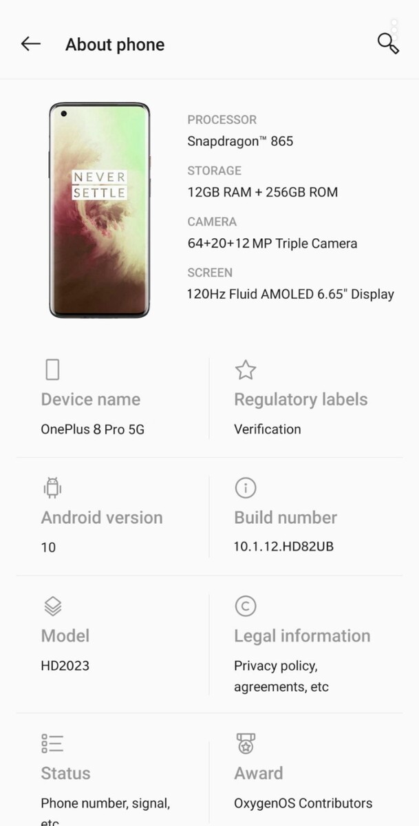 Was den Speicher anbelangt, so verfügt das OnePlus 8 Pro 5G zumindest in der aufgelisteten Variante über 12 GB Arbeitsspeicher und 256 GB internen Speicher, aber sicherlich wird es weitere Speicheroptionen geben, in einem anderen Leak wurden bspw. 8 GB RAM aufgelistet. Als Betriebssystem ist Android 10 vorinstalliert.