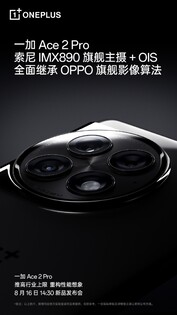 Auch zu den übrigen Kameras schweigt OnePlus – kein Wunder, denn Gerüchten zufolge erhält das Ace 2 Pro abgesehen von der hochauflösenden Hauptkamera lediglich eine 8 MP f/2.2 Ultraweitwinkel-Kamera und einen 2 MP Sensor. Die Teaser von OnePlus versprechen vier Jahre Updates, Stereo-Lautsprecher, den größten Vibrations-Motor aller Android-Smartphones, einen Infrarot-Blaster, Wi-Fi 7, NFC und Dual-Band-GPS.
