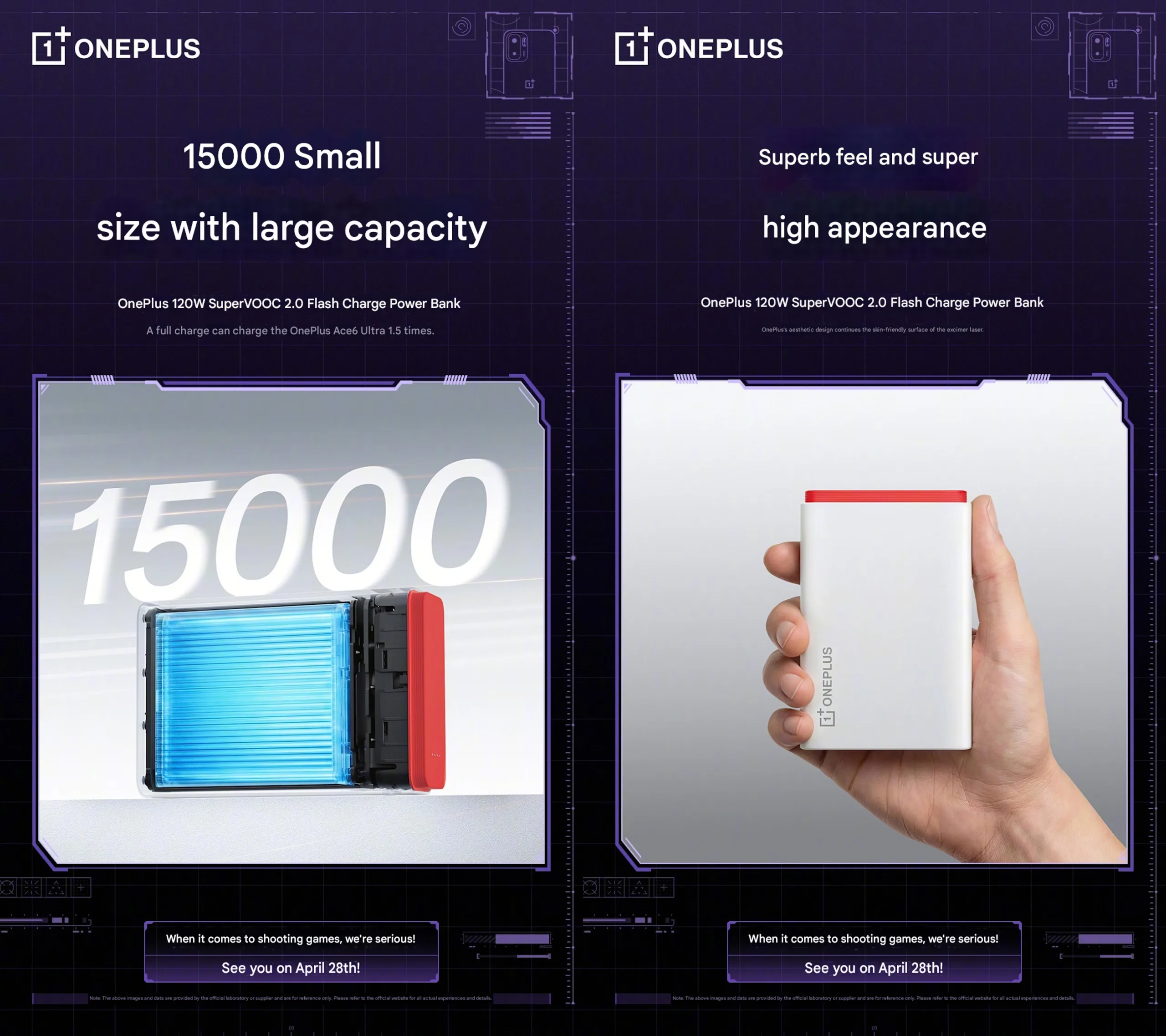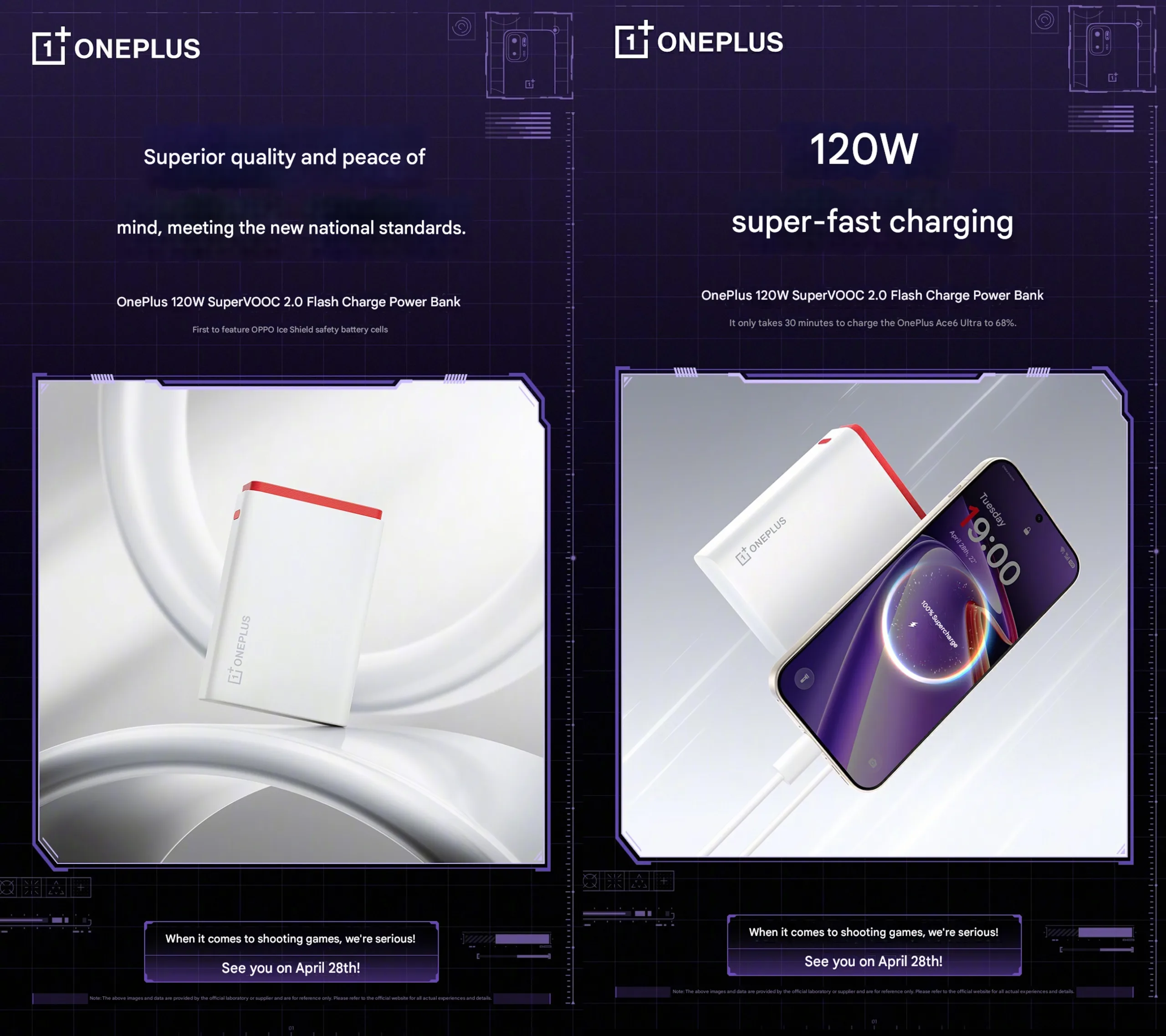 Die neue 120 Watt OnePlus Powerbank erscheint zusammen mit dem neuen Flaggschiff-Smartphone des Unternehmens, dem Ace 6 Ultra. Dieses neue Gaming-Smartphone soll am 28. April 2026 in China vorgestellt werden.
