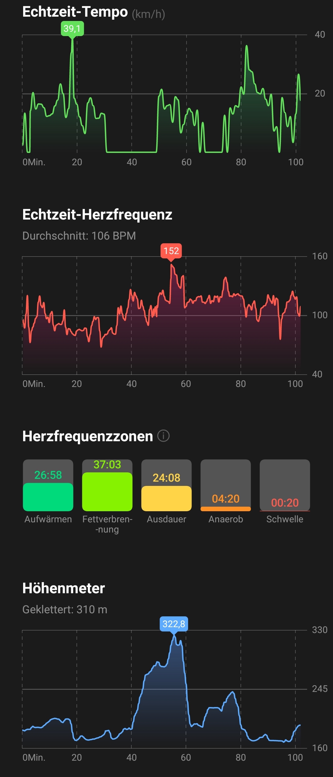 Auf einer Fahrrad-Tour, die Komoot mit exakt 25 km ausweist und die Apple Watch mit 25,19 km trackte, fehlten der OnePlus Watch dagegen vergleichsweise geringe 300-400 m. Allerdings lässt sich die Distanz in dieser Größenordnung ohnehin schlechter vergleichen.