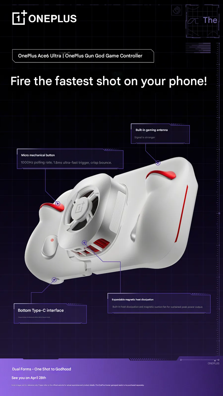 Der neue Gaming-Controller wird gemeinsam mit dem OnePlus Ace 6 Ultra in China vorgestellt. Der Marktstart ist für den 28. April 2026 geplant. Ob das Smartphone auch international erscheinen wird, ist bislang nicht bekannt.