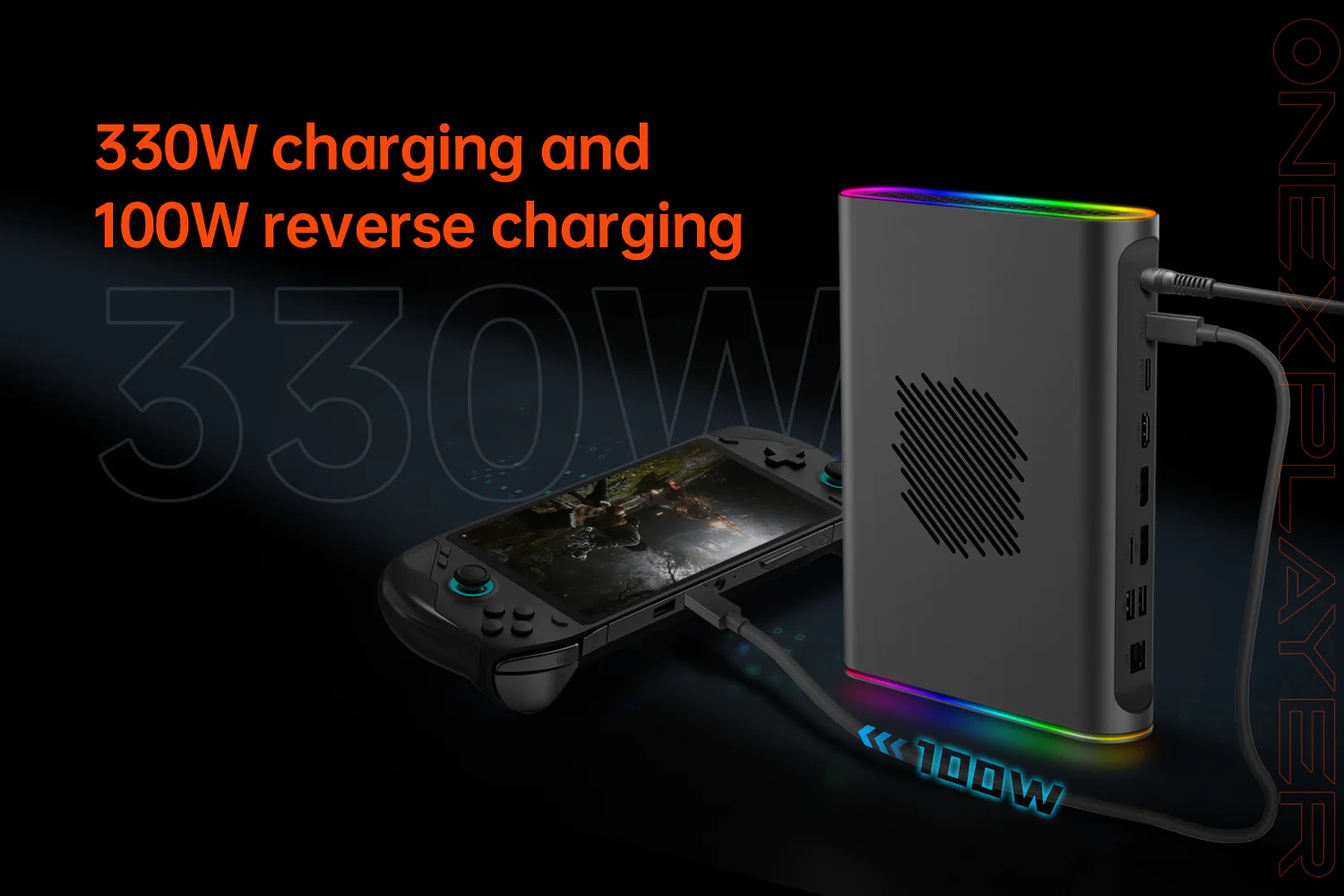 Als Grafikkarte kommt die AMD Radeon RX 7800M zum Einsatz. Diese bringt 60 Compute Units mit, die Taktfrequenz wird mit 2.145 MHz angegeben, die Grafikkarte soll sich bis zu 180 Watt genehmigen können, das Netzteil 330 Watt leisten. Der GDDR6-Speicher ist 12 Gigabyte groß. Die Kühlung erfolgt aktiv, die Docking-Lösung misst 229,5 x 175 x 43 Millimeter und soll rund 1.590 Gramm auf die Waage bringen. Es stehen einmal HDMI 2.1 und zweimal DisplayPort 2.0 bereit, eine RGB-Beleuchtung ist vorhanden.