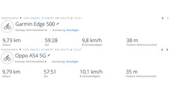 Auf unserer obligatorischen Fahrradtour wird die zurückgelegte Strecke mit einer ähnlichen Ungenauigkeit aufgezeichnet, wie sie auch unser Referenzgerät Garmin Edge 500 zeigt.