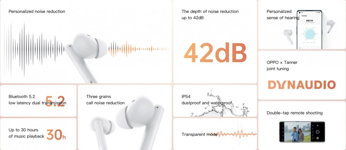 Die mit ANC ausgestatteten Oppo Enco Free2 sollen laut Herstellerangaben Außengeräusche von bis zu 42 Dezibel ausblenden können. Für die Soundwiedergabe sind 100 mm Treiber, die zusammen mit Dynaudio abgestimmt wurden, bei den TWS-Ohrhörern an Bord. Der Hörgenuss kann über die dazugehörige App individuell angepasst werden