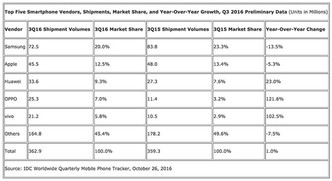 Nicht ohne Stolz feiert Oppo in einer Unternehmensmeldung jetzt den Aufstieg zur Nummer 4 bei den weltweit größten und wichtigsten Smartphone-Marken. In China war Oppo im abgelaufenen 3. Quartal 2016 sogar erstmals die Nummer 1 bei den Smartphones und verwies den Markenbruder Vivo auf Platz 2. Für Huawei blieb laut den Marktdaten des IDC Asia/Pacific Mobile Phone Tracker Panels nur Rang 3. Für Xiaomi und Apple zeigt die Absatzkurve weiter nach unten.