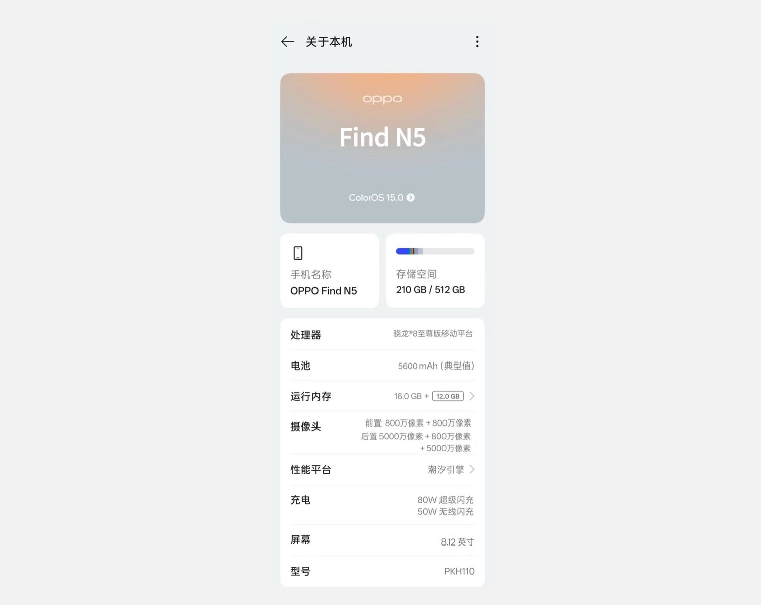 Oppo hat kürzlich bereits offiziell bestätigt, dass das Oppo Find N5 am 20. Februar enthüllt wird, und dabei bereits zahlreiche Bilder und ein Teaser-Video veröffentlicht, welche das Design des Falt-Flaggschiffs im Detail zeigen. Unterdessen ist im Netz ein Screenshot der "Über dieses Smartphone"-Seite der Systemeinstellungen des Find N5 aufgetaucht, welcher einige der wichtigsten Spezifikationen bestätigen soll.