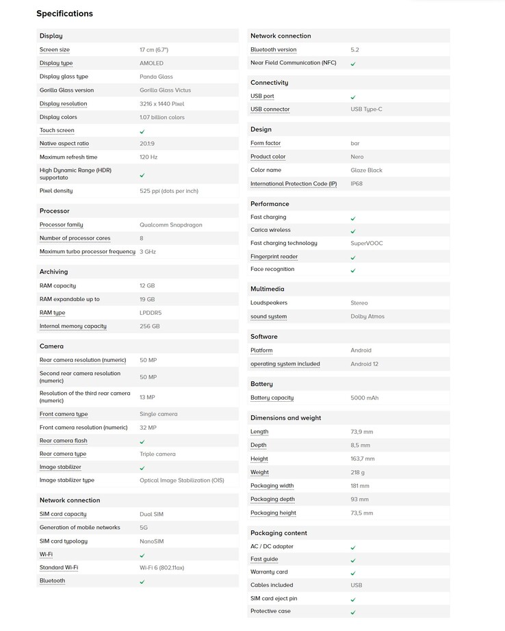 Datenblatt Oppo Find X5 Pro