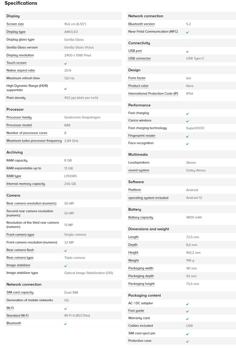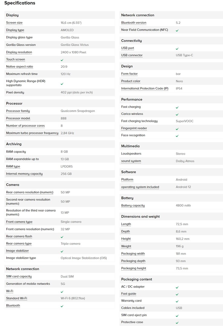 Das Oppo Find X5 Pro hat das größere nach IP68 geschützte Chassis gegenüber dem kleineren, nur nach IP54 zertifizierten Find X5 Gehäuse. Folglich ist auch der Akku im Find X5 Pro mit 5.000 mAh etwas größer als die 4.800 mAh Batterie im Find X5. Ersteres unterstützt zudem schnelleres Wireless Charging (50 Watt vs. 30 Watt). Ganz im Gegensatz zu Samsung und Apple scheint Oppo immer noch ein Netzteil beizulegen, zumindest wird das in diesen Datenblättern angedeutet, obwohl das regional unterschiedlich sein könnte.
