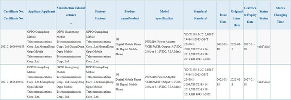 Die von verschiedenen Berichten zitierten CCC-Zertifizierungsunterlagen zeigen, dass Oppo seinen beiden Tophandys Find X5 und Find X5 Pro jeweils ein 80 Watt SuperVOOC-Ladegerät in die Verkaufsbox packen wird. Das Smartphone-Modell Find X5 trägt im entsprechenden Prüfbericht die Modellnummer PFFM10, das Find X5 Pro wird als PFEM10 gelistet. Beide Oppo-Handys untersützen offenbar also Schnellladen mit bis zu 80 Watt, da der mitgelieferte Charger mit 5 bis 11 Volt und maximal 7,3 Ampere ausgewiesen wird.