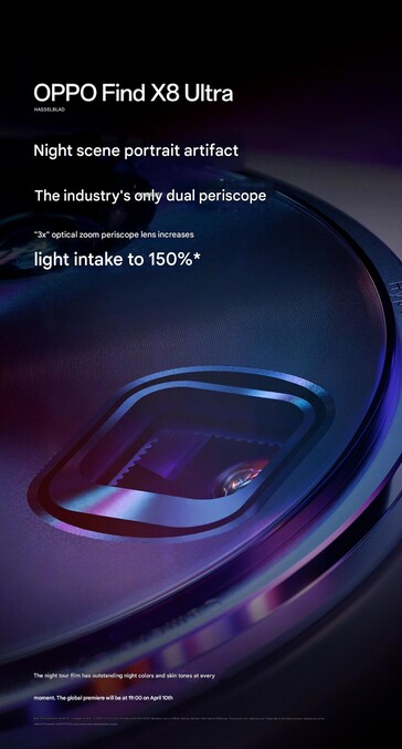 Laut den zwei unten verlinkten Teaserplakaten aus dem offiziellen Oppo Weibo-Kanal, die wir maschinell übersetzt haben, wird das Periskop-Telefoto-Duo deutlich lichtsensitiver. Konkret soll sich die Lichtstärke des 3x Telefotos um 150 Prozent erhöhen, was zuletzt auch schon ein Leaker angedeutet hatte. Neu ist der Hinweis auf die sogar um bis zu 251 Prozent erhöhte "Lichtsensitivität" des 6x Telefoto-Moduls. Verglichen wird in beiden Fällen mit dem Oppo Find X7 Ultra, die Daten stammen erstmal nur aus dem Oppo-Labor.