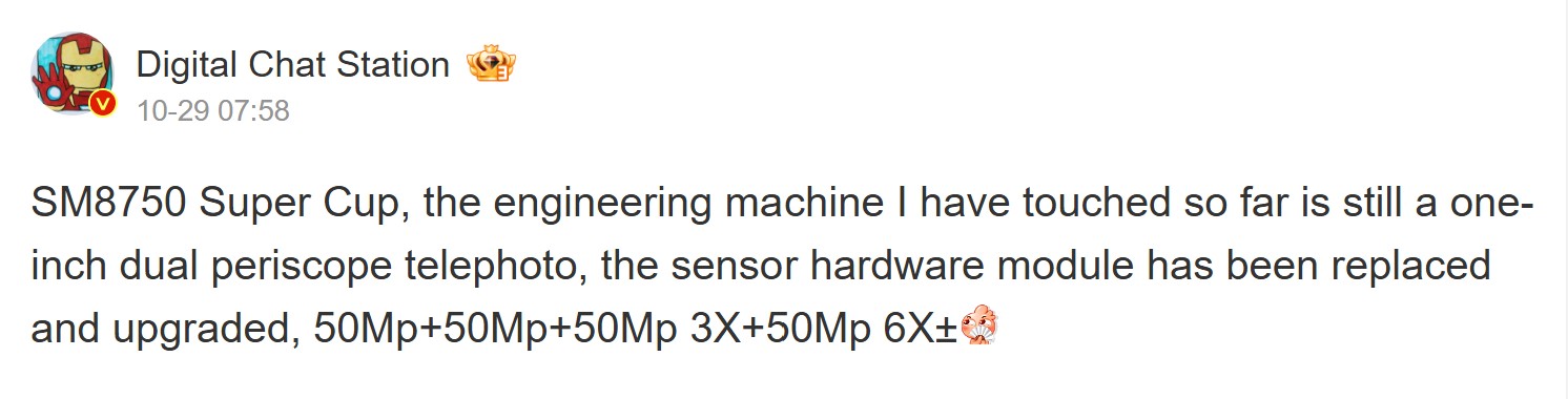 Das bekräftigte kürzlich auch der gewöhnlich sehr gut vorab informierte, chinesische Leaker Digital Chat Station auf Weibo mittels Post zu den erwarteten Oppo Find X8 Ultra Specs (siehe auch Screenshot unten). Die Infos beziehen sich auf ein Testgerät, eine minimale Chance, dass es im finalen Modell noch Änderungen geben wird, kann man also nicht ausschließen. Insbesondere bei den Hasselblad-Kameras soll der Nachfolger des Oppo Find X7 Ultra natürlich auftrumpfen. Schon das Oppo Find X8 Pro bietet eine 50 Megapixel Quad-Kamera mit zwei Telefoto-Sensoren, beim Ultra setzt Oppo aber noch eins drauf: