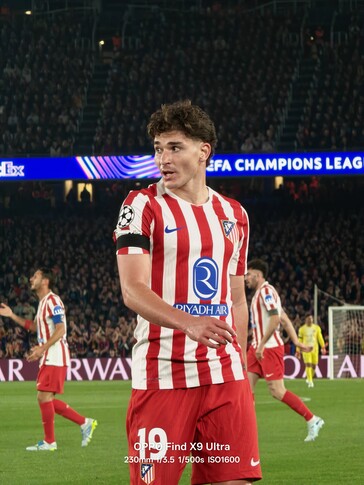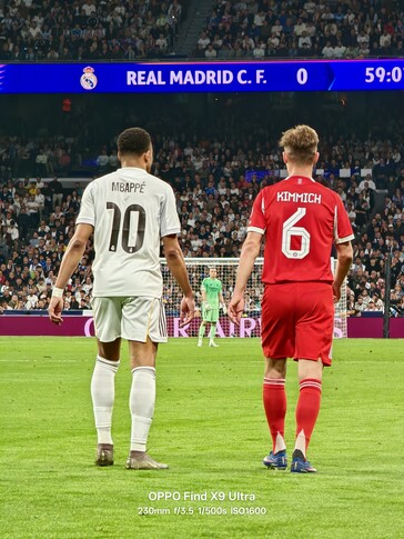 Seit Kurzem sind sämtliche Kamera-Specs des Oppo Find X9 Ultra auch aus offizieller Quelle bekannt, nun liefert Oppo auch neue Beispiele für die Qualität der 10x Zoomkamera, die etwa ideal dazu geeignet scheint, bei einem Fussballmatch der Uefa Champions League Detailaufnahmen der Spieler zu liefern. Bei allen vier Fotos unten handelt es sich um 230mm Shots mit F/3.5 Blende, zumindest schnell genug für das Fotografieren von Sportlern scheint die weitreichende Hasselblad-Kamera im Handyformat also zu sein. Allerdings fallen die ISO-Werte in diesen Beispielfotos allesamt sehr hoch aus.