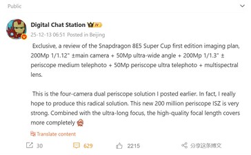 In seinem aktuellen Weibo-Post deutete Digital Chat Station nun aber auf eine im Detail etwas andere Konfiguration, wobei derzeit noch nicht sicher ist, mit welchem Design der Nachfolger des Oppo Find X8 Ultra final auf den Weg geschickt wird. Fix ist demnach der erste 200 Megapixel Sensor von Sony, ein 50 Megapixel Ultraweitwinkel, ein Multispektral-Sensor wie im Oppo Find X9 Pro sowie zwei Periskop-Telefotos, basierend auf einem 50 Megapixel Sensor für weiter entfernte Objekte (aktuell 6x) sowie einem mit 3x Zoom für Porträts.