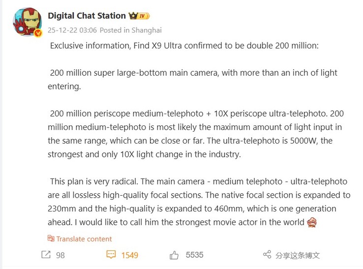 2026 folgen dann Vivo mit dem 35mm Flaggschiff Vivo X300 Ultra, hochwertigem Ultraweitwinkel und zwei 200 Megapixel Sensoren sowie Oppo mit dem Find X9 Ultra, das offenbar kurz vor der Finalisierung noch ein deutliches Kamera-Upgrade erhalten hat, wie der Leaker Digital Chat Station auf Weibo aktuell verrät. Demnach wird die auf dem 1/1.12 Zoll großen Sony LYT-901 200 Megapixel Sensor basierende Hauptkamera wie beim Vivo X200 Ultra noch von einem zweiten 200 Megapixel Sensor für das etwa 3x Periskop-Telefoto sowie einem weiteren Periskop-Telefoto ergänzt, das es in sich hat.
