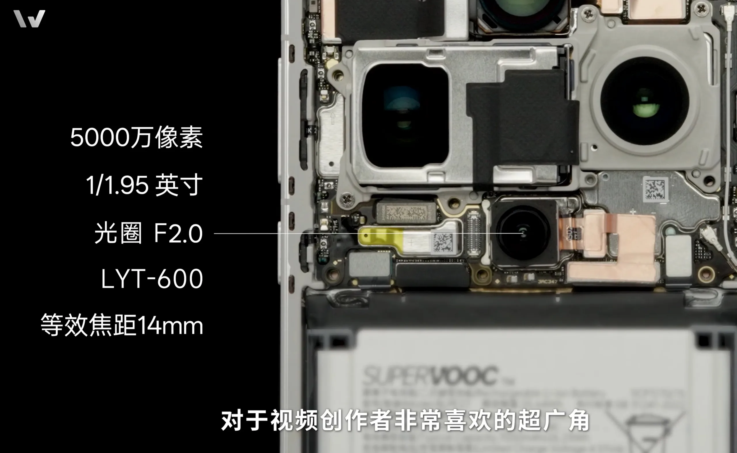 Im Video wird erstmals auch das 50 Megapixel 14mm Ultraweitwinkel im Detail genannt. Es handelt sich hierbei wie erwartet um den Sony LYT-600, einen 1/1.95 Zoll Sensor, immerhin etwas größer als in den meisten anderen Smartphones, wenngleich hier das Vivo X300 Ultra mit 1/1.28 Zoll Sensor ungeschlagen bleibt. Die Optik hat eine F/2.0 Blende. Last but not least bestätigt Oppo die beiden 200 Megapixel Sensoren für die 23mm Hauptkamera, einen Sony LYT-901 mit F/1.5 Blende sowie den Omnivision OV52A mit F/2.2 Blende für das 70mm 3x Telefoto. Kurz eingeblendet werden auch die Specs des neuen Multispektralsensors, der mit 3,2 Megapixel und 24 Farbkanälen eine Dynamik von 15EV erreichen soll.