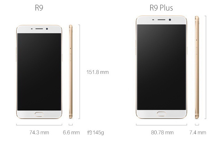 Zu den wichtigsten Neuerungen der beiden R9 LTE-Smartphone-Modelle mit Metall-Unibody-Chassis zählen zudem jeweils 4 GB RAM und 64 GB Systemspeicher (erweiterbar via microSD-Karten um bis zu 128 GB), ein schneller in den Home-Button integrierter Fingerabdrucksensor, sowie eine 16-MP-Hauptkamera mit PDAF, optischer Bildstabilisierung (OIS) und f/2.0. Im R9 Plus arbeitet als Sensor ein Sony IMX298. Das Oppo R9 hat zudem vorne eine 13-MP-Selfiekamera an Bord. Das größere Oppo R9 Plus sogar eine 16-MP-Frontkamera.