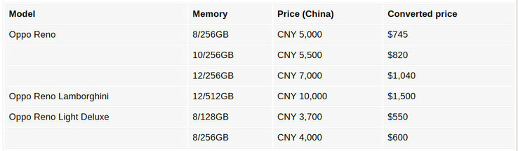 Für die möglichen Modellvarianten Oppo Reno Light Deluxe werden für das Handy mit 8/128 GB rund 3.700 Yuan (487 Euro) und für die Ausführung mit 8/256 GB dann 4.000 Yuan (526 Euro) veranschlagt.