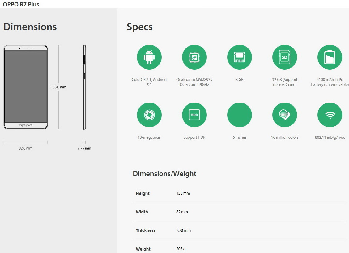 Zum weiteren Featureset der neuen Android-Phones zählen jeweils 3 GByte RAM, 16 GByte (R7) oder 32 GB Systemspeicher (R7 Plus), schnelles WLAN 802.11 ac und Bluetooth 4.0. Als Mobile-OS läuft das Android 5.1 Lollipop basierte neu angekündigte ColorOS 2.1. Zudem haben beide Oppo-Smartphones an der Rückseite eine 13-MP-Hauptkamera mit Blende f/2.2 an Bord. Das R7 Plus zusätzlich Laser-Autofokus und einen Dual-LED-Blitz. Für Selbstportraits ist vorne je eine 8-MP-Cam mit f/2.4 integriert.