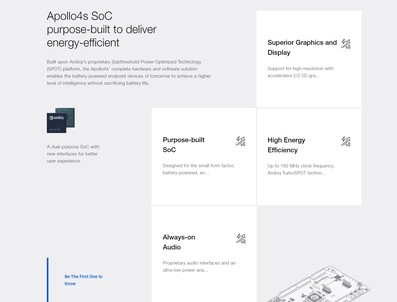Erstaunlich offen für ein unveröffentlichtes Produkt informiert Ambiq bereits über einige der Vorzüge der Oppo Watch 2 auf Basis des Ambiq Apollo4s. Viel Performance und lange Akkulaufzeiten sollen sich nicht mehr gegenseitig ausschließen, schnellere Reaktionszeiten und eine flüssige Bedienung sind dank "Subthreshold Power-Optimized Technology", kurz SPOT, akkuschonend möglich. Der Hersteller nennt gleich noch mehr Details zum Apollo4s: Bis zu 192 Mhz Taktfrequenz mit TurboSPOT-Technologie, Always-On Multi-Channel Audio sowie High-Res 2/2.5D-Grafik bei bis zu 640 x 480 Pixel und 32bit Farbtiefe sollen IoT-Geräte - und auch Smartwatches - schneller und energieeffizienter machen.