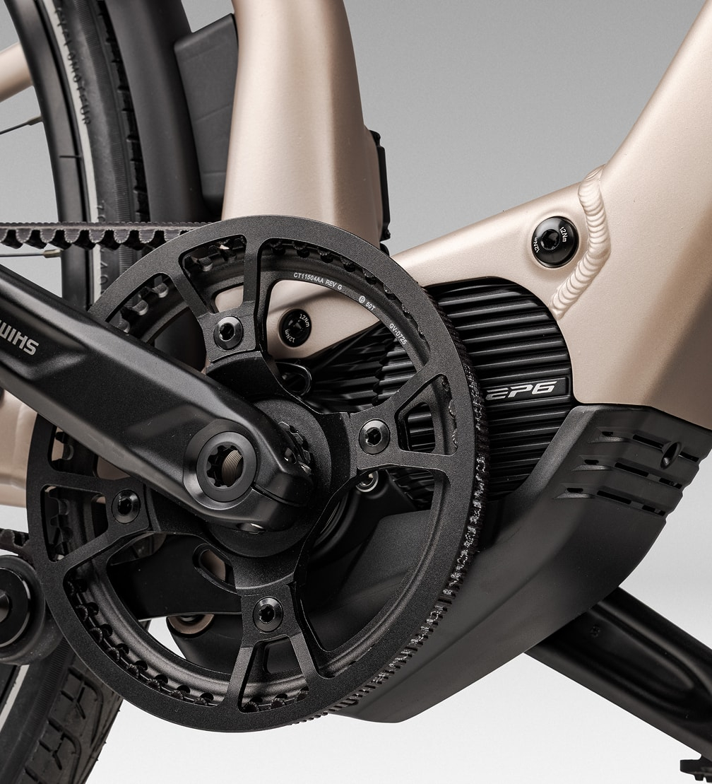 Das Fahrrad kommt mit einem Shimano-EP600-Motor. Dabei handelt es sich um einen Mittelmotor mit einem maximalen Drehmoment von 85 Nm. Der verbaute Akku bietet eine Kapazität von 420 Wh. Das würden wir als leicht unterdurchschnittlich einordnen, dürfte in der Stadt aber kein Problem darstellen. Der Akku ist dabei fest in das Unterrohr montiert. Die Nutzung eines Range Extenders mit einer Kapazität von 252 Wh ist möglich. Es kommt ein Shimano EN500-Display zum Einsatz. Das Display ist kompakt und bietet keine Farbdarstellung oder etwa die Möglichkeit zur Anzeige von Navigationshinweisen.