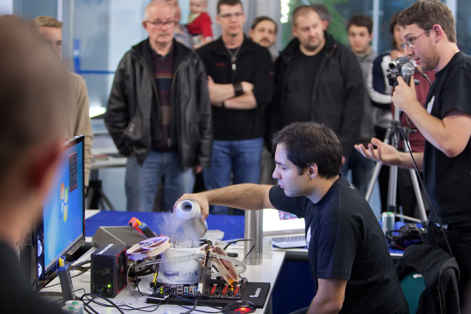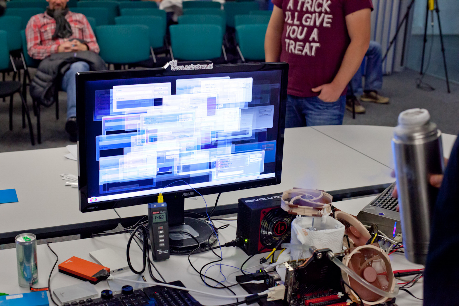 Mit dem Backupequipment schafften es die Jungs von Overclockers.at dann trotz mehrstündigen Experimentierens nicht mehr, die Weltrekordleistung von der Generalprobe noch einmal zu wiederholen: es blieb beim 2. Platz. Das wollen die Overclocker nicht auf sich sitzen lassen und starten daher am Freitag, den 7. Dezember um 10.00 in Wien einen weiteren Weltrekordversuch. Hierzu wird es erneut einen Livestream vom Weltrekordevent geben:
