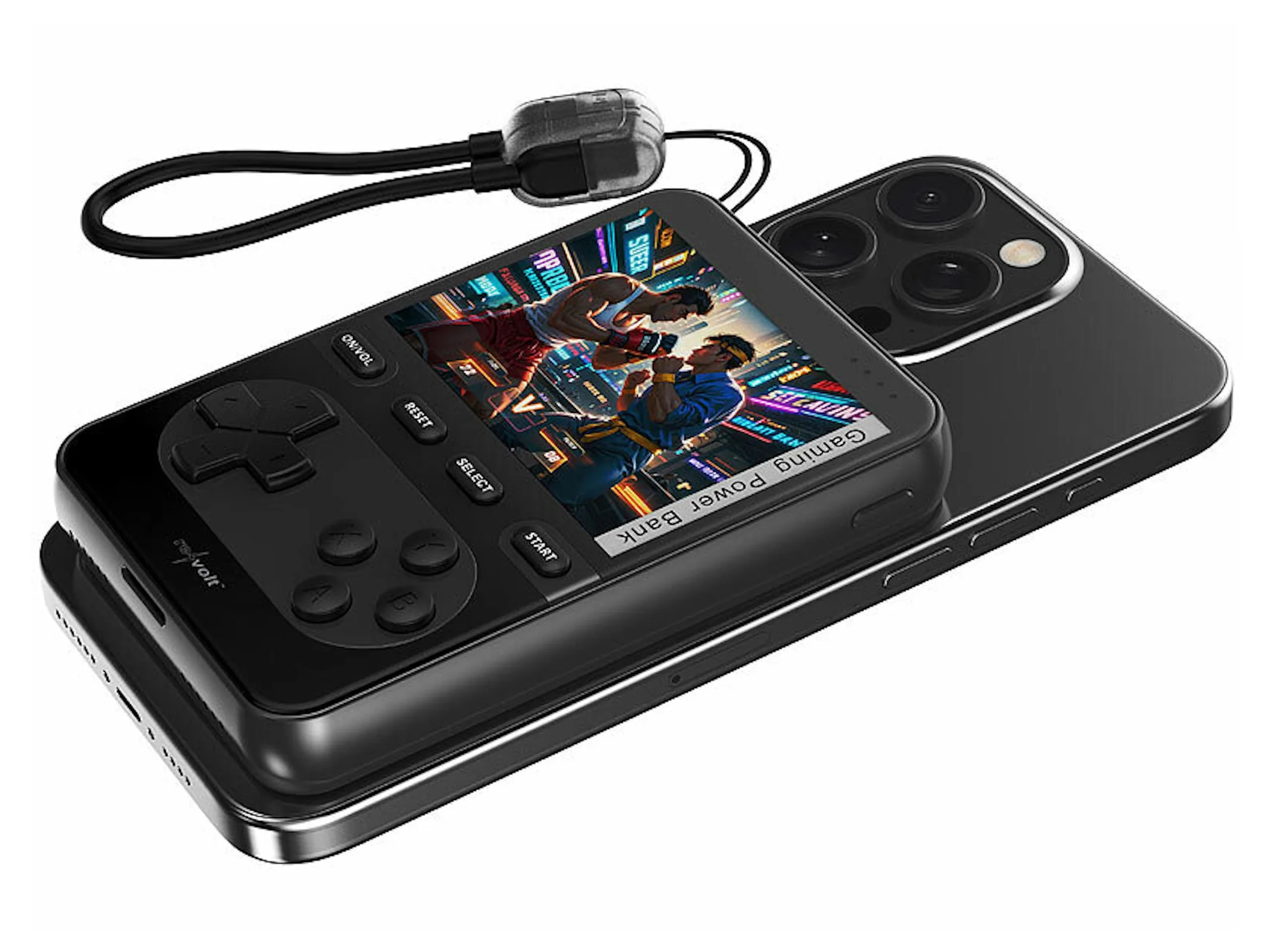 Das 108 x 73 x 18 Millimeter große System bringt dabei 200 Gramm auf die Waage und ist mit einem 2,8 Zoll großem IPS-Display ausgestattet. Joysticks fehlen, so gibt es neben einem Steuerkreuz nur noch vier Aktionstasten und zusätzliche Tasten etwa für das Aufrufen von Menüs. Angegeben wird eine Kapazität von 10.000 mAh beziehungsweise 38,5 Stunden, wodurch sich eine Spielzeit von maximal über 24 Stunden ergeben soll. Dabei kann die Powerbank über USB Typ C bis zu 20 Watt ausgeben, was für das relativ zügige Aufladen eines Smartphones ausreicht, aber nicht zur Ladung eines Notebooks. Zudem kann die Powerbank Energie auch drahtlos über Qi an ein kompatibles Gerät abgeben - und zwar mit bis zu 15 Watt.