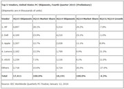 Auf das Gesamtjahr 2015 bezogen schrumpfte der globale PC-Markt laut Gartner um 8 Prozent, von 313,68 Millionen PCs im Jahr 2014 auf 288,73 Mio. in 2015. Bei IDC fiel der Rückgang mit minus 10,4 Prozent sogar noch deutlicher aus. Nach 308,36 Millionen errechnete IDC für das Jahr 2015 nur noch ein weltweites PC-Liefervolumen von 276,22 Mio. Geräten.