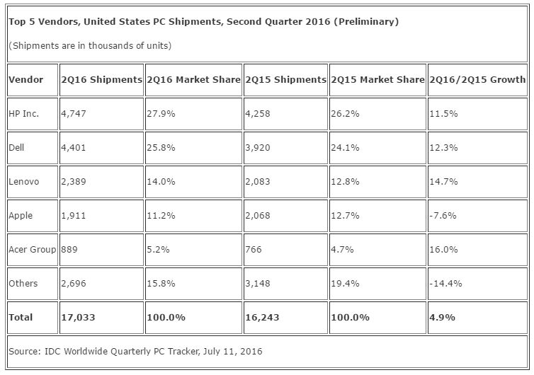 Die Mac Verkäufe hat es im vergangenen Quartal dabei am härtesten erwischt, sowohl in den USA als auch weltweit ging es bei Apple von allen Herstellern am stärksten abwärts. Hier kommt eventuell zum tragen, dass Apple seine Hardware schon lange nicht auf den neuesten Stand gebracht hat und diese somit veraltet ist, in diesem Quartal werden neue Macbooks erwartet.