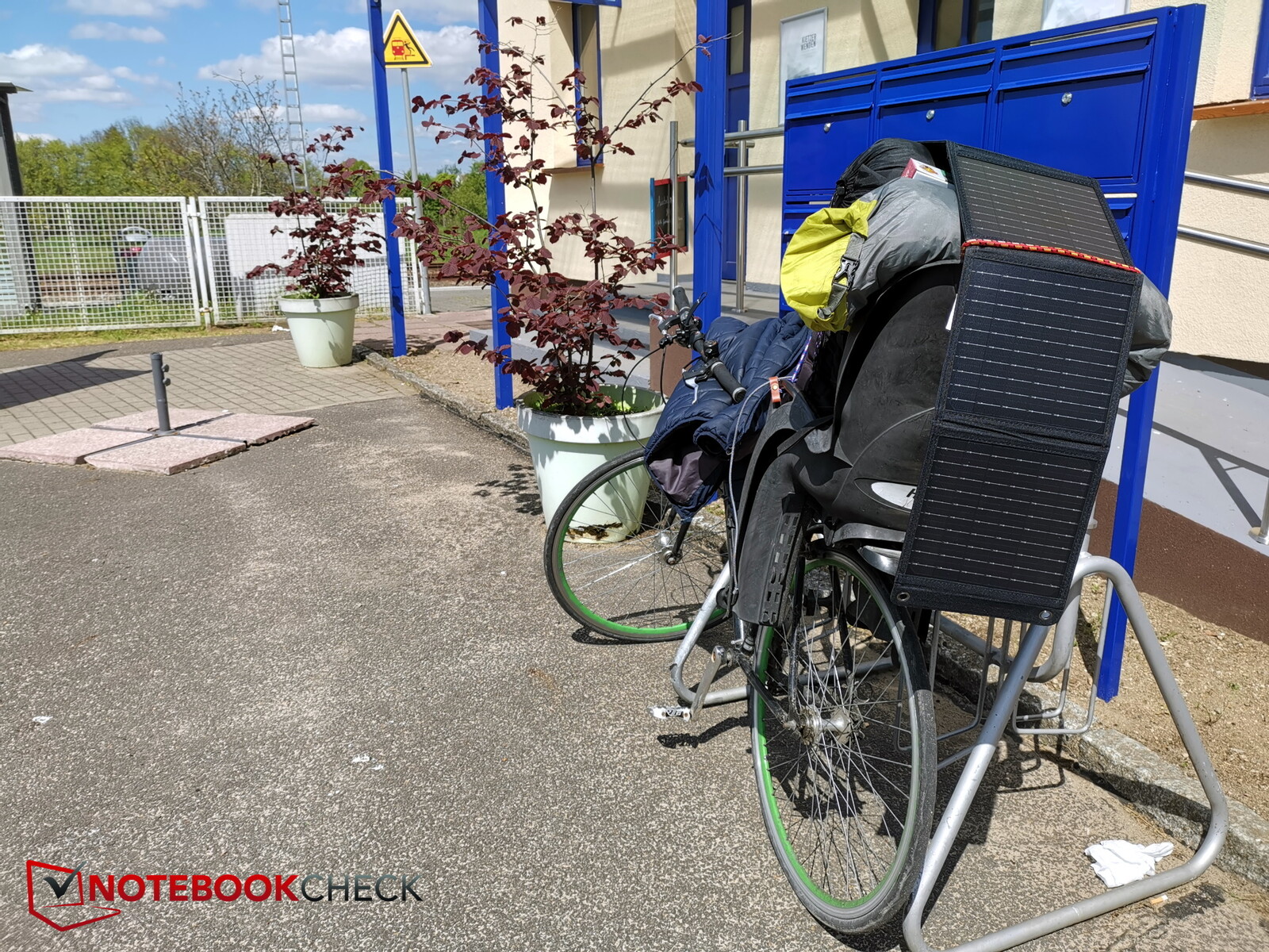 Bei Pausen oder an festen Standorten kann man dann alle Module gleich perfekt ausrichten und maximiert so den Ertrag. Wir waren dennoch positiv überrascht davon, wie zügig unser Smartphone auch während der Fahrt mit dem Rad auflud, auch wenn die hängenden Module nicht unbedingt in Sonnenrichtung zeigten.
