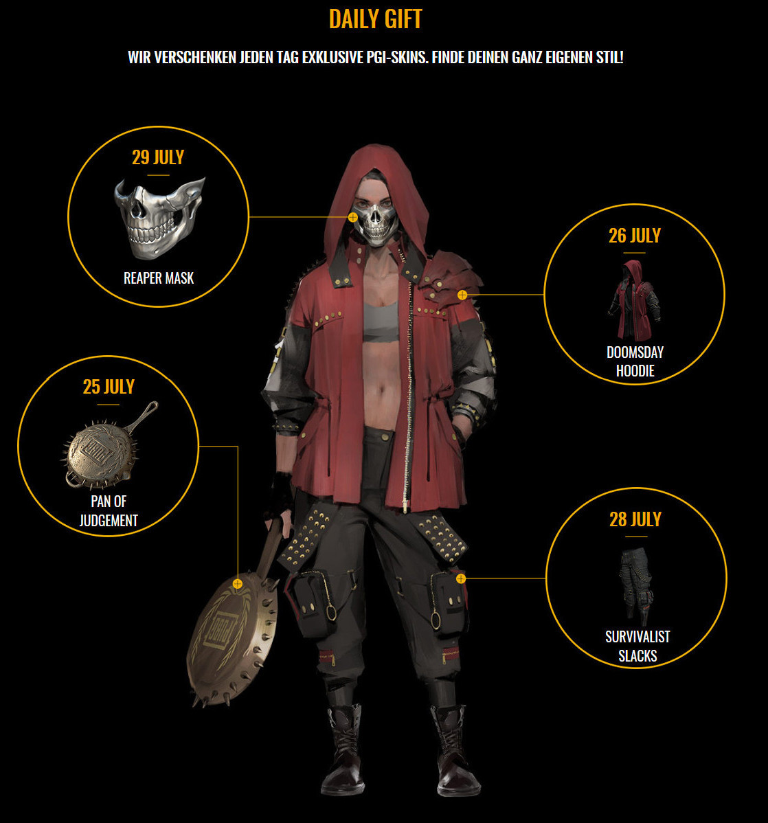 Die vier PGI-exklusiven Items werden an je einem Veranstaltungstag vor Ort verteilt. Teilnehmer, die das komplette Set sammeln möchten, können an allen vier Tagen am PGI 2018 teilnehmen. Besitzer eines Premium Tickets genießen zusätzliche VIP-Vorzüge in der Mercedes-Benz Arena in Berlin, darunter komfortablere Sitze, Zugang zur Premium Lounge, ein exklusiver Eingang und mehr.