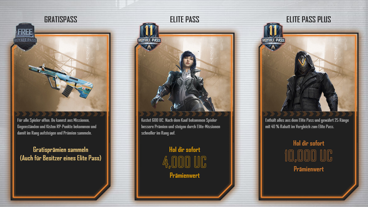 - Verbesserungen des Royale Pass: Neue Missionen mit mehr Optionen in Team Arena, Payload Modus und besseren Belohnungen. Verbesserte Guides und Anzeige.