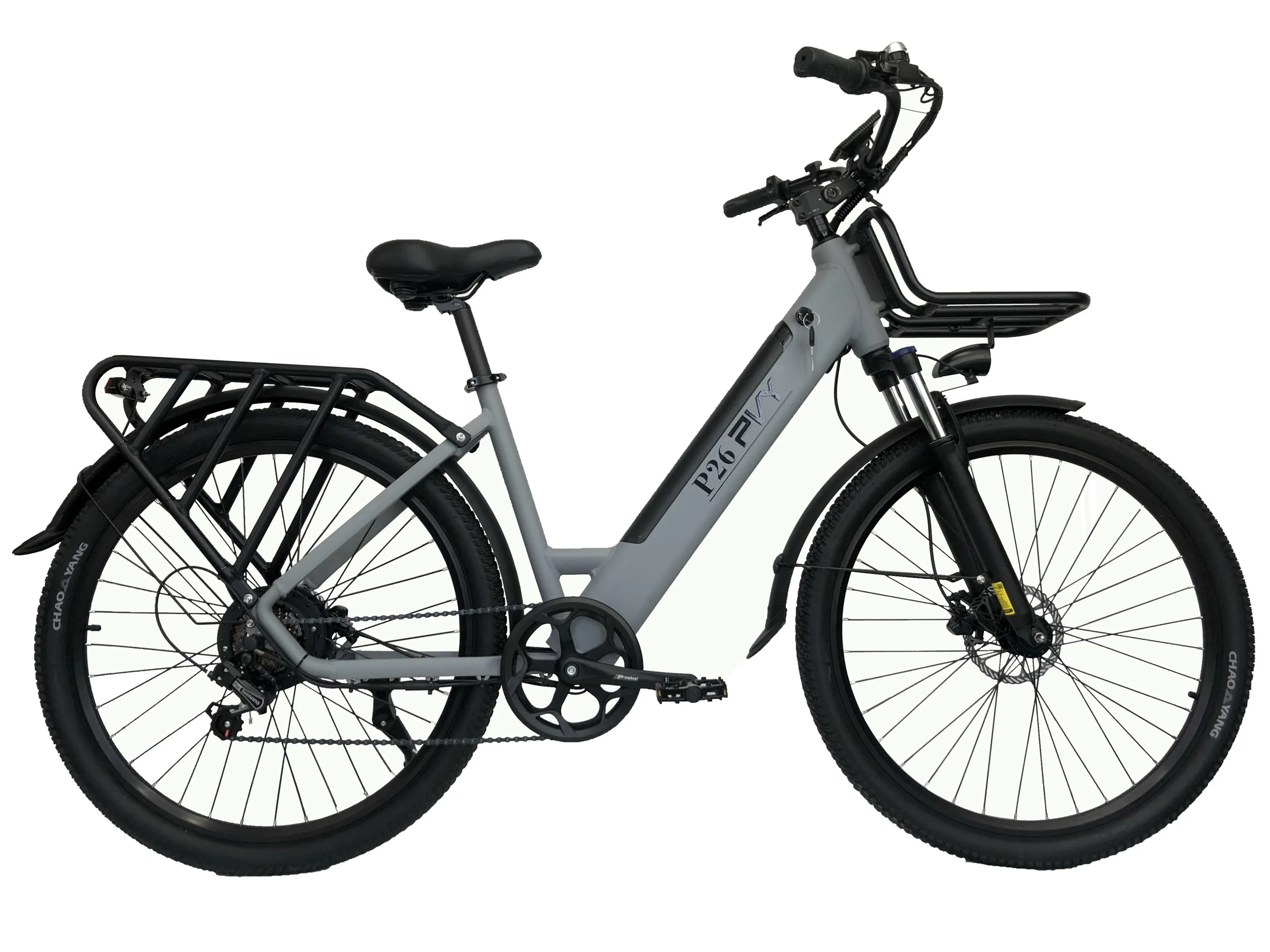 Mit dem P26 bietet PVY ab sofort ein neues E-Bike mit einer durchaus ordentlichen Ausstattung an, welches sich auch für den Transport größerer Lasten eignen dürfte - zumindest ist dafür genug Platz, in Bezug auf die maximale Belastbarkeit steht das PVY P26 nicht allzu gut dar. So wird die maximale Belastbarkeit des 24 Kilogramm schweren und aus einem Aluminiumrahmen gefertigten E-Bikes auf 120 Kilogramm beziffert, um ein richtiges Cargo-E-Bike handelt es sich also nicht. Der Gepäckträger hinten soll mit bis zu 50 Kilogramm und der Frontkorb mit bis zu 15 Kilogramm belastbar sein. Theoretisch würde sich ein Kindersitz nutzen und gleichzeitig auch größere Einkäufe transportieren lassen.