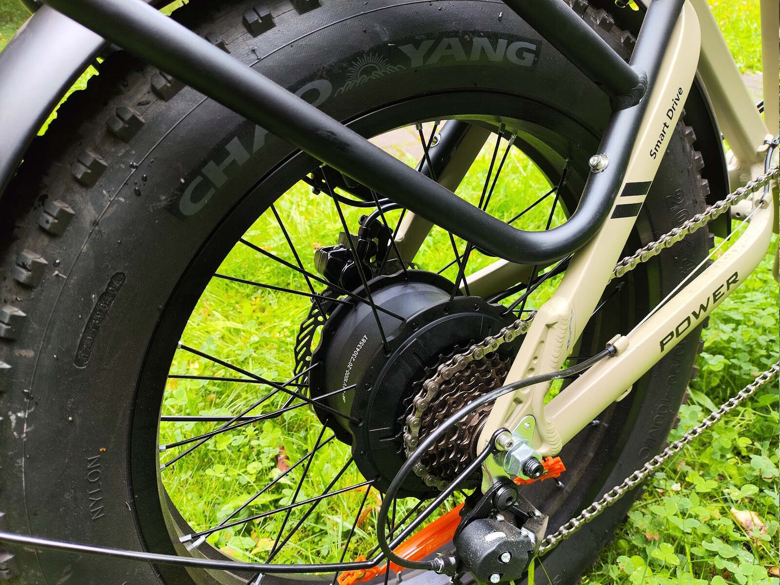 Wie auch beim Z20 Pro nutzt PVY einen Nabenmotor im Hinterrad, welcher über einen Pedalsensor gesteuert wird. Damit geht eine gewisse Verzögerung bei der Unterstützung einher, zudem wird die Stärke der Unterstützung über die Stufe und nicht wie bei einem Drehmomentsensor auch über den eigenen Krafteinsatz gesteuert. Der Motor schaltet beim Bremsen aus, was den Bremsweg verringern kann. Die Leistung des Elektromotors ist hoch - doch dazu später mehr. Die maximale Reichweite wird mit 120 Kilometern angegeben. Im praktischen Einsatz waren 80 Kilometer erreichbar - und zwar mit starker Unterstützung.