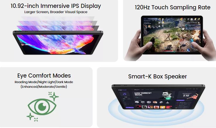 Als SoC kommt der in der Leistung doch recht deutlich beschränkte Unisoc Tiger T606 mit zwei Cortex-A75- und Cortex-A55-Kernen zum Einsatz, der Arbeitsspeicher ist angemessene 8 Gigabyte groß. Mit 128 Gigabyte ist der interne Speicher nicht extrem knapp bemessen, die Erweiterung ist mithilfe einer Speicherkarte recht problemlos möglich - wenn denn die Nutzung mit zwei SIM-Karten nicht erforderlich ist. Genutzt wird ein 10,92 Zoll großer und mit 1.208 x 800 Pixeln auflösender Bildschirm, mit einem Gewicht von 523 Gramm und einer Dicke von 8 Millimetern ist das Oscal Pad 90 noch recht gut transportabel. Mithilfe einer Bluetooth-Tasatatur kann das Tablet auch einfach zur Eingabe von Texten genutzt werden.