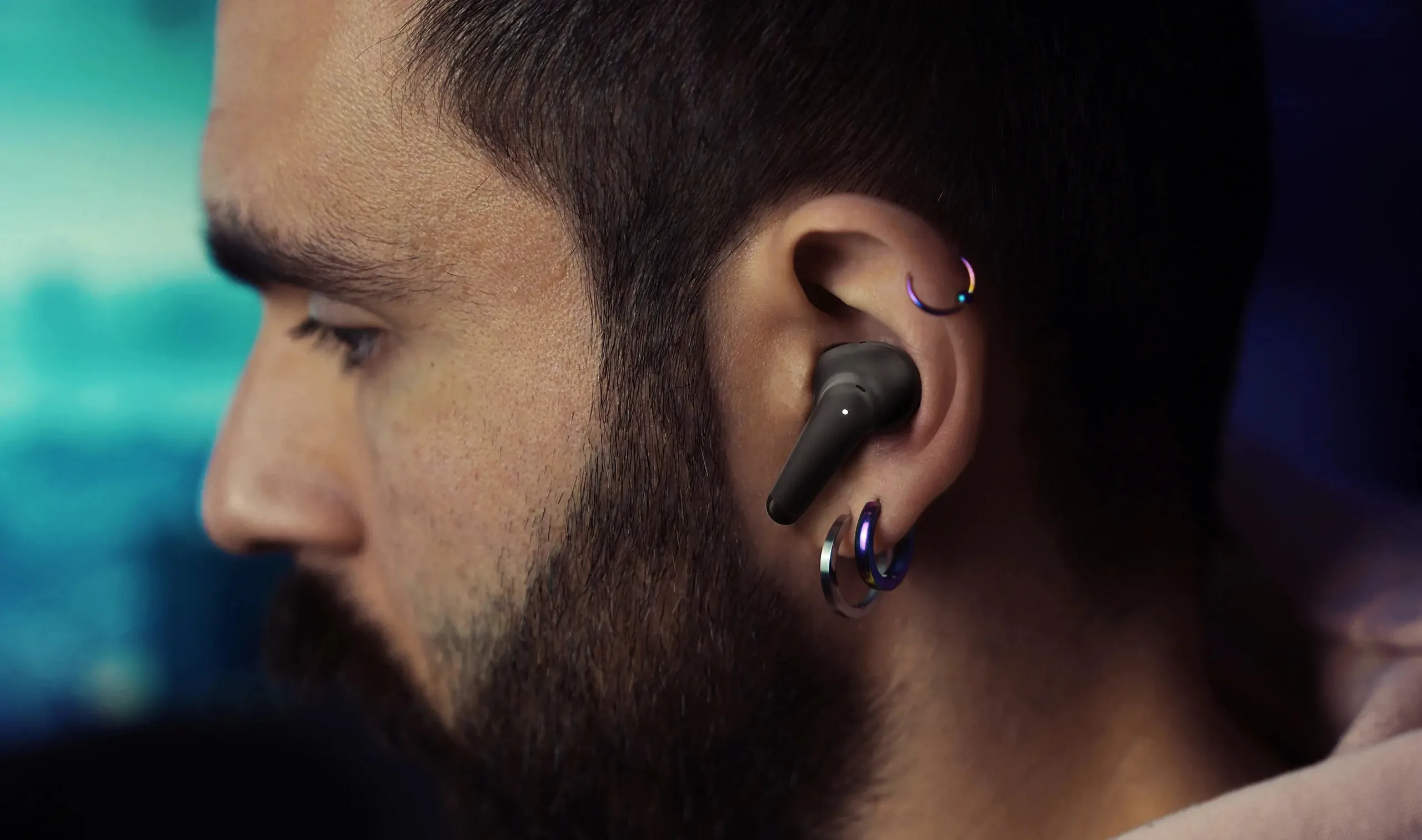 Das mattschwarze Gehäuse ist ebenso unauffällig wie der Funktionsumfang – die komplett drahtlosen Ohrhörer unterstützen eine aktive Geräuschunterdrückung (ANC) samt Transparenz-Modus und ein nach IPX4 zertifiziertes Gehäuse, sodass Schweiß und leichter Regen kein Problem darstellen sollten. Eine berührungsempfindliche Oberfläche an der Außenseite der Ohrhörer ermöglicht es, die Wiedergabe zu steuern.