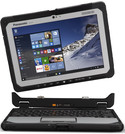 Es ist zudem das erste Toughbook, das mit der Intel Core vPro Prozessortechnologie der Generation Skylake in Form eines Intel Core m5-6Y57 vPro Dualcore in lüfterloser Konstruktion und einer Intel HD Graphics 515 als IGP arbeitet. Als Speicher sind 8 GB RAM und eine schnelle 256-GB-SSD an Bord. Der 10,1 Zoll große Full-HD-Touchscreen mit 1920 x 1200 Pixeln und einer hohen Helligkeit von bis zu 800 cd/m² kann mit Handschuhen bedient werden. Schriftliche Eingaben und Zeichnungen sind via einem optionalen Digitizer-Stift mit IP55-Schutz möglich.