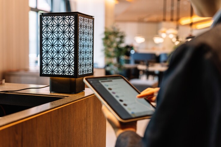 Mit Lanterna bietet Panasonic eine ebenso einfache wie clevere Smart-Home-Lampe an. Denn alle vier Seitenwände des Lampenschirms bestehen aus einem LCD ohne Hintergrundbeleuchtung. Die Panels werden stattdessen durch eine LED beleuchtet, welche die Leistung einer 60 Watt Glühbirne erreicht. Dadurch fällt die Helligkeit zu den Ecken hin ab, wodurch der charakteristische Look einer Lampe trotz der Displays erzielt werden kann.