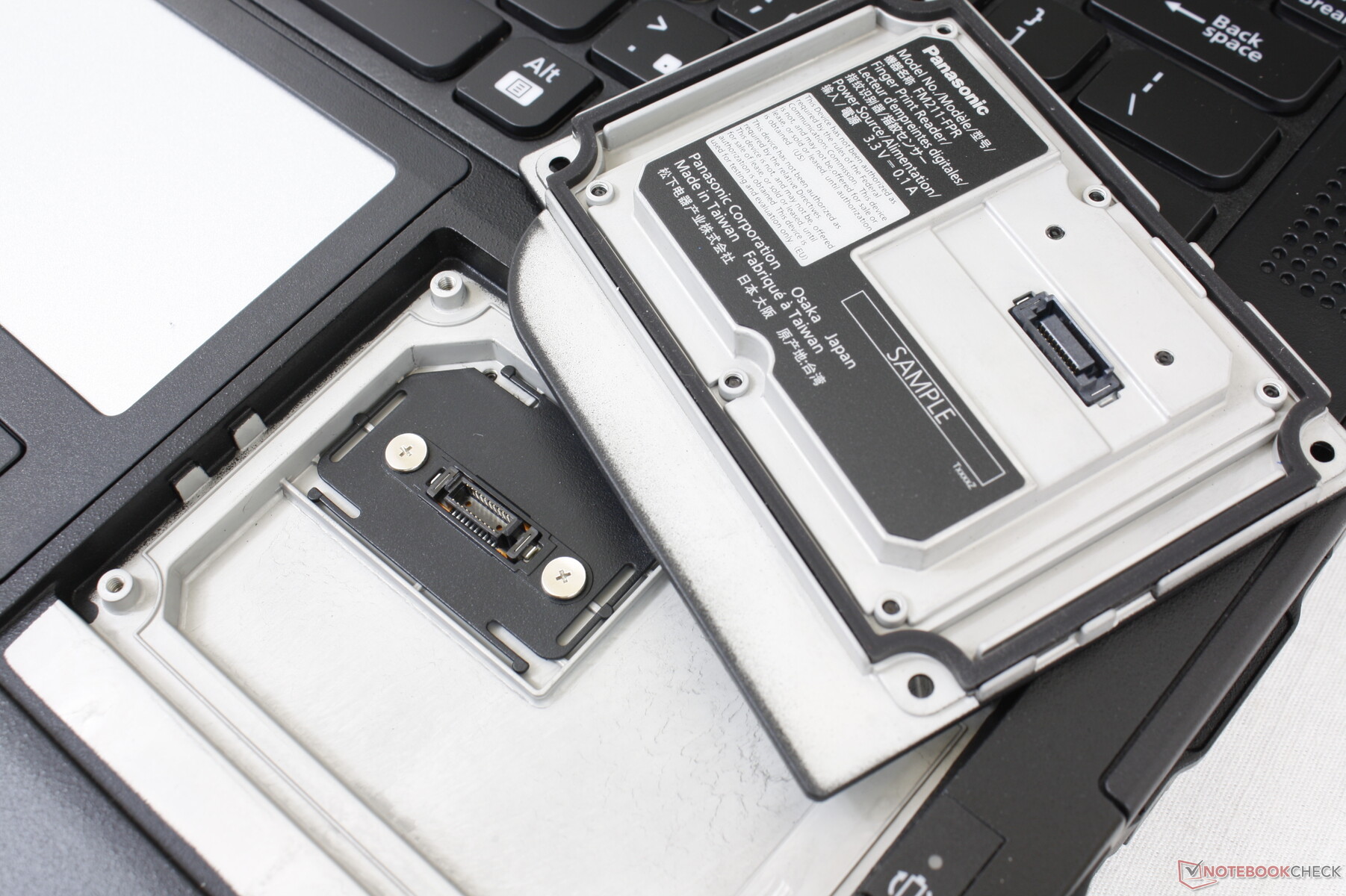 Ein passiver Eingabestift befindet sich im Griff an der Vorderseite des Geräts. Panasonic bietet eine breite Palette an Zubehör für seine Notebook-Modelle an, die Sie hier finden.
