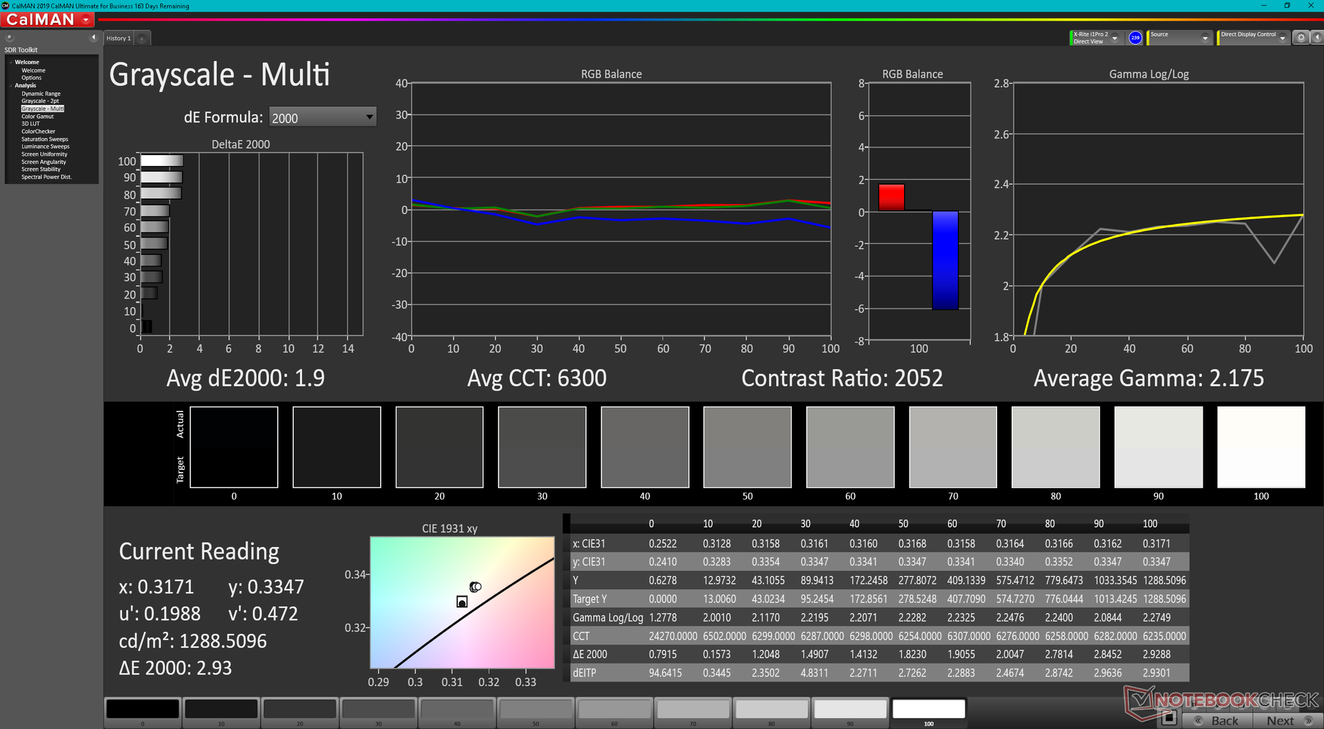 ΔE Greyscale Calman: 2.7 | ∀{0.09-98 Ø5}