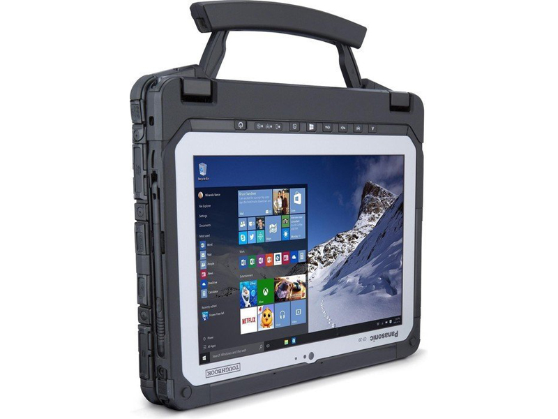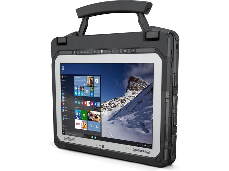 Beim Bildschirm handelt es sich um ein im Sonnenlicht ablesbares IPS-Modell mit einer maximalen Helligkeit von 800 cd/m² und einer Auflösung von 1.920 x 1.200 pixels (224 ppi). Für den kapazitiven 10-Punkt-Touchscreen ist optional Dual-Touch mit mitgelieferten IP55-zertifizierten Digitizer verfügbar. Panasonics PC Settings Utility ermöglicht es dem User zwischen Touchscreen und Digitizer zu wählen – nur den Touchscreen oder nur den Digitizer. Zudem können User zwischen normaler Touchscreen-Verwendung und Modi, die sich für Handschuhe und nasse Finger eigenen wählen. Das CF-20 ist „fully rugged“ und erfüllt die MIL-STD810G Standards für Stürze, Erschütterungen, Vibrationen, explosive Atmosphären, Temperatur, Regen und Sand. Staubeintritt und Wasserfestigkeit sind auf IP65-Level zertifiziert. Das weist darauf hin, dass das CF-20 'staubdicht' ist und 'Strahlwasser' aus einer 6,3-mm-Düse von beliebiger Richtung standhält. Panasonic hat zudem die Fähigkeit des Tablets Stürze aus 1,2-Meter-Höhe auf eine Betonoberfläche zu überleben getestet. Das Toughbook CF-20 wird von einem Intel Core m5-6Y57 Dual-Core-Prozessor mit einer Taktrate von 1,1 GHz (bis zu 2,8 GHz mit Turbo Boost) angetrieben. Dieser wird durch 8 GB RAM und einer 256 GB SSD als internen Speicher unterstützt. Allerdings sind weder RAM noch Massenspeicher erweiterbar. In puncto Schnittstellen ist das CF-20 außergewöhnlich gut ausgestattet. Das Tablet verfügt über RJ-45, HDMI, USB 3.0, einen 3.5 mm Audio-Ausgang und einen MicroSD-Kartenslot an der linken Seite. Die rechten Seite bietet den Stromanschluss. Alle Schnittstellen verstecken sich hinter versperrbaren Abdeckungen. Zudem beherbergt die rechte Seite den Stylus und es gibt an beiden Seiten Kensington-Lock-slots. Das Toughbook ist wahrscheinlich eines der besten Industrie-Tablets am Markt, doch der m5-Prozessor beschränkt die Leistung.