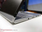 Sehr großzügig geht man indes bei der Schnittstellenausstattung zu Gange. In der Basiseinheit findet man insgesamt 3 USB 3.0 Ports, einen SDXC Cardreader sowie HDMI, VGA und LAN in voller Größe. Die Tablet-Einheit erweitert das Angebot um einen USB 3.1 Type-C-Port (Gen. 1) und einen 3,5-mm-Klinken-Anschluss für ein Headset. Auch ein Sicherheitsschloss ist vorhanden. Über den HDMI- bzw. VGA-Port sowie den Type-C-Port im Tablet ist auch ein Betrieb von zwei externen Monitoren möglich.