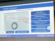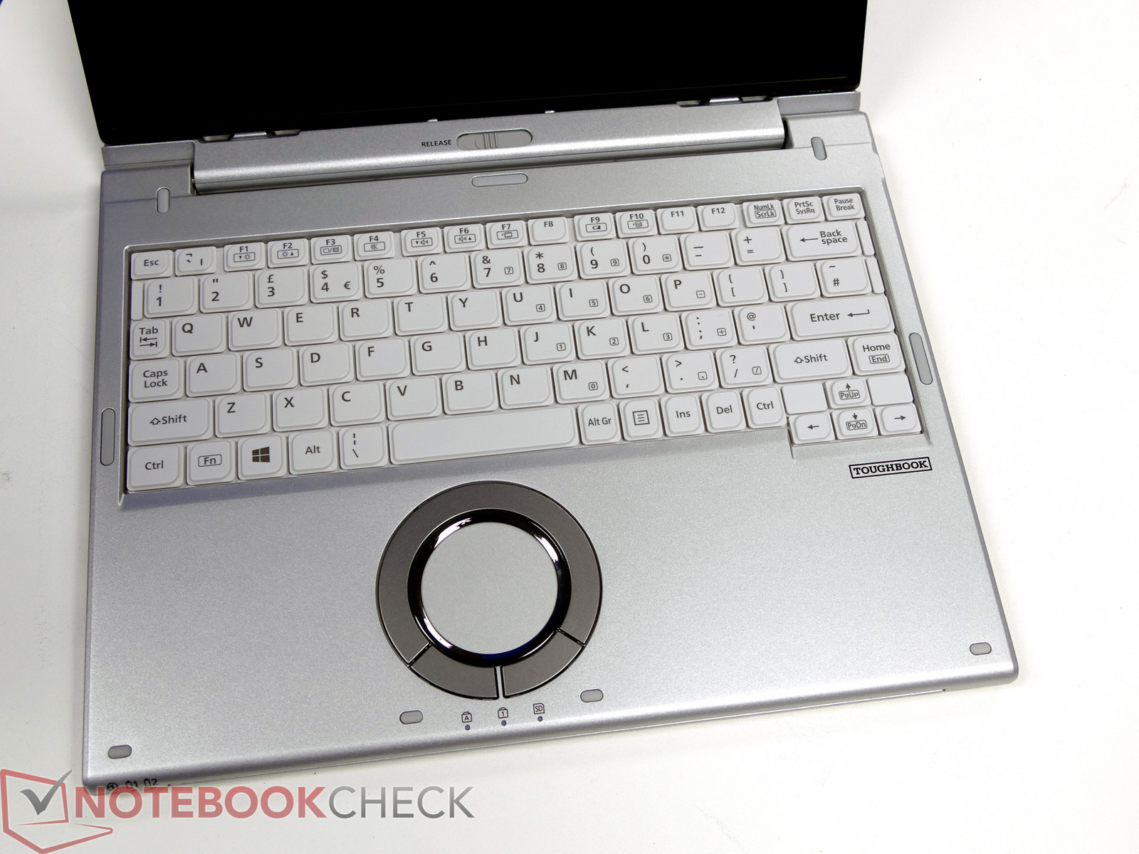 Für eine benutzerfreundliche Bedienung soll das Keyboard sorgen, das im traditionellen Layout (kein Chicklet) ausgeführt wurde. Der Tastenhub beträgt 2 mm, die Pfeiltasten sind abgesetzt und die Tastenkappen leicht konkav ausgeführt. Zudem sind die Zeichen der Tasten-Zweitbelegungen größer ausgeführt und die Tastenbeschriftung mit speziellem Laser-Print aufgebracht, was ein Ablösen derselben nachhaltig verhindern soll. Auffällig ist das runde Touchpad, das Panasonic zufolge Vorteile beim Blättern in Dokumenten bringen soll und zudem im Zusammenspiel mit einer speziellen System-Software für das CF-XZ6 optimiert wurde.