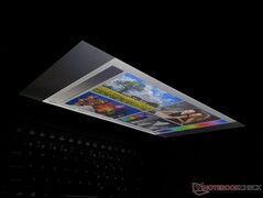 Die 1.000-cd/m²-Helligkeit, das matte Overlay, die 180-Grad-Scharniere und die breiten IPS-Blickwinkel tragen dazu bei, dass das Display im Freien sehr gut einsetzbar ist. Nichtsdestotrotz kann es bei direkter Sonneneinstrahlung etwas überfordert werden, weshalb wir Nutzern die Arbeit im Schatten empfehlen. Der Kontrast und die Farben verschlechtern sich nur bei sehr breiten Einblickswinkeln.