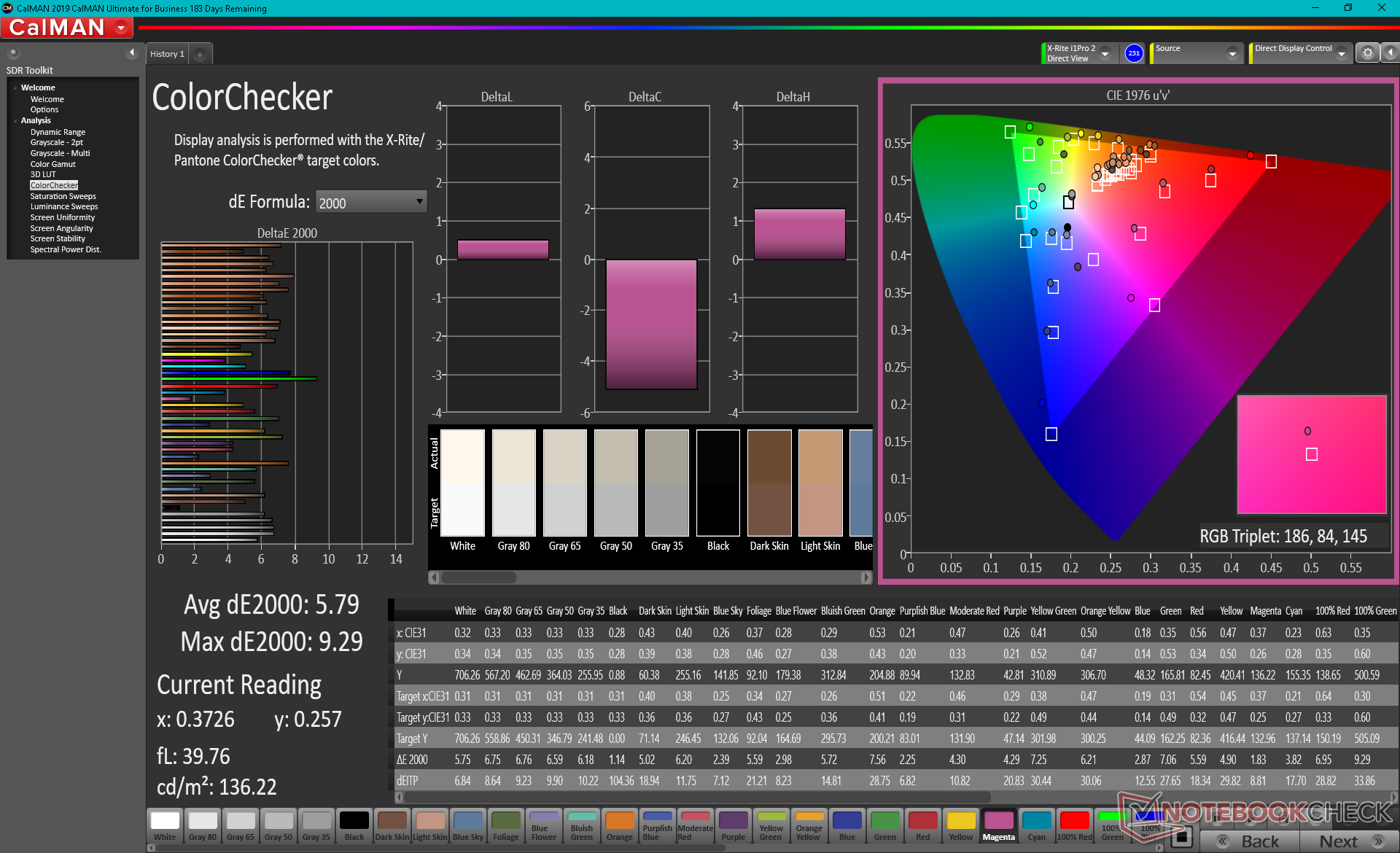 ΔE ColorChecker Calman: 5.79 | ∀{0.5-29.43 Ø4.77}