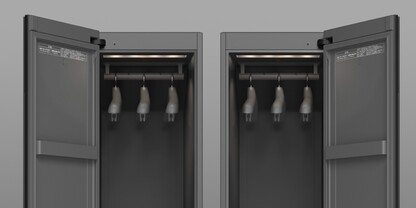 Panasonic hat in Japan eine smarte Garderobe vorgestellt, die Platz für drei Jacken, Hemden, Hosen oder Sakkos bietet. Wird die Garderobe mit einer Steckdose verbunden und der integrierte Wassertank aufgefüllt, kann Kleidung mithilfe von heißem Dampf von Falten befreit werden, wodurch es überflüssig werden soll, diese zu bügeln.