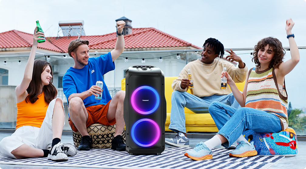 Der Bluetooth-Lautsprecher Tronsmart Halo 300 wartet mit 240 W Ausgangsleistung auf und kann so laut Herstellerangaben bis zu 111 dB laut tönen. Hierfür verantwortlich sind je zwei 8 Zoll große Woofer, 3-Zoll-Mitteltöner sowie 2,25 Zoll messende Hochtöner. Sie bilden ein 2.2-Kanal-Audiosystem mit 3-Wege-Sound und 270 Grad breiter Soundbühne. Auf Wunsch können über 100 Bluetooth-Lautsprecher des Herstellers miteinander verbunden werden.