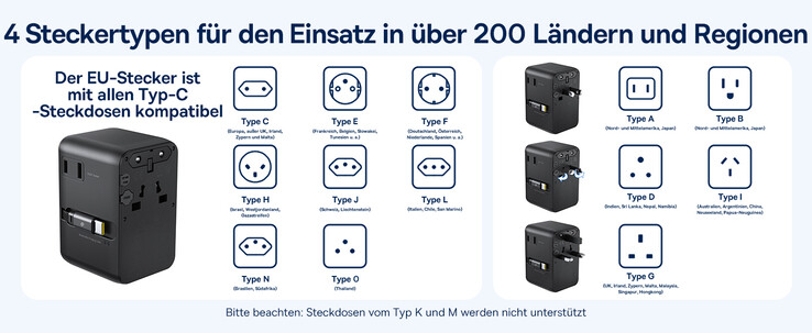 Der Baseus EnerCore CG11 ist ein klassischer Reiseadapter mit Mehrwert. Er ist laut Herstellerangaben für mehr als 200 Länder geeignet und unterstützt viele verschiedene Steckertypen wie Type A und B für Nord- und Mittelamerika sowie Japan, Type I für Australien, China und weitere Länder sowie Type G für Großbritannien. So lassen sich heimische Produkte wie Ladegeräte, Haartrockner und Co auch im Ausland verwenden, wenn dies von der Spannung her passend ist. Der Reiseadapter ist für 125 bis 250 V ausgelegt und unterstützt maximal 1.250 bis 2.500 W.