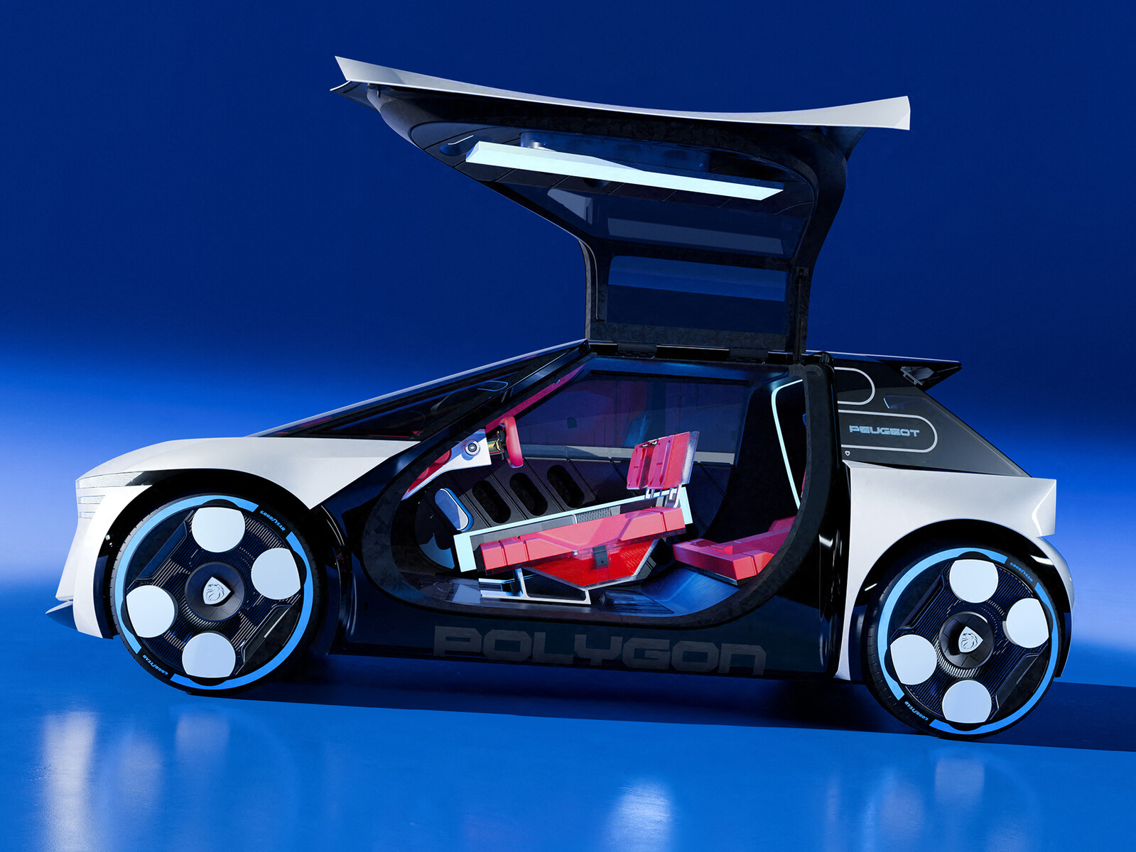Das Polygon Concept ist mit seinen knapp vier Metern Länge ein direkter Fingerzeig auf die Zukunft des elektrischen Kleinwagens, vermutlich den Nachfolger des Peugeot e-208 auf der "STLA Small"-Plattform. Die Studie zeigt eine neue, horizontale Lichtsignatur, die den bekannten "Drei-Krallen-Look" ablöst. Auch der Ladezustand wird außen über einen seitlichen Micro-LED-Screen angezeigt. Wer nicht bis 2027 warten will, um das Fahrgefühl zu testen, kann das virtuell tun. Peugeot hat das Fahrzeug in das Videospiel Fortnite integriert, wo es auf einer eigenen Insel ("Polygon City") gefahren werden kann.
